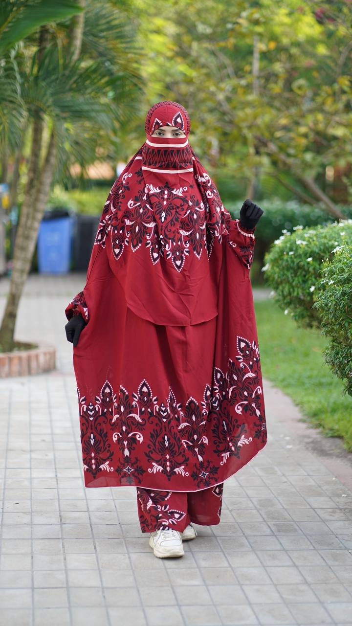 চায়না থেকে সরাসরি আমদানি করা প্রিমিয়াম গ্রেডের চেরী স্যাটিন সিল্ক দিয়ে তৈরি এই এক্সক্লুসিভ সেটটি আধুনিকতা, আরাম এবং ইসলামী ফ্যাশনের এক অনন্য সম্মিলন।